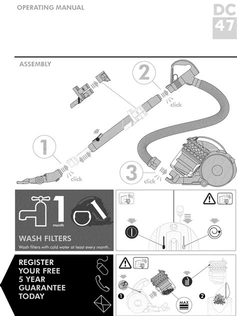 Motorhead (21 pages) vacuum cleaner dyson dc50 operating manual (9 pages) vacuum cleaner dyson dc 50 operating. Page 1 operating manual assembly clik clik wash filter wash filter with cold water at least every 6 months. The service includes labor and spare parts where required.